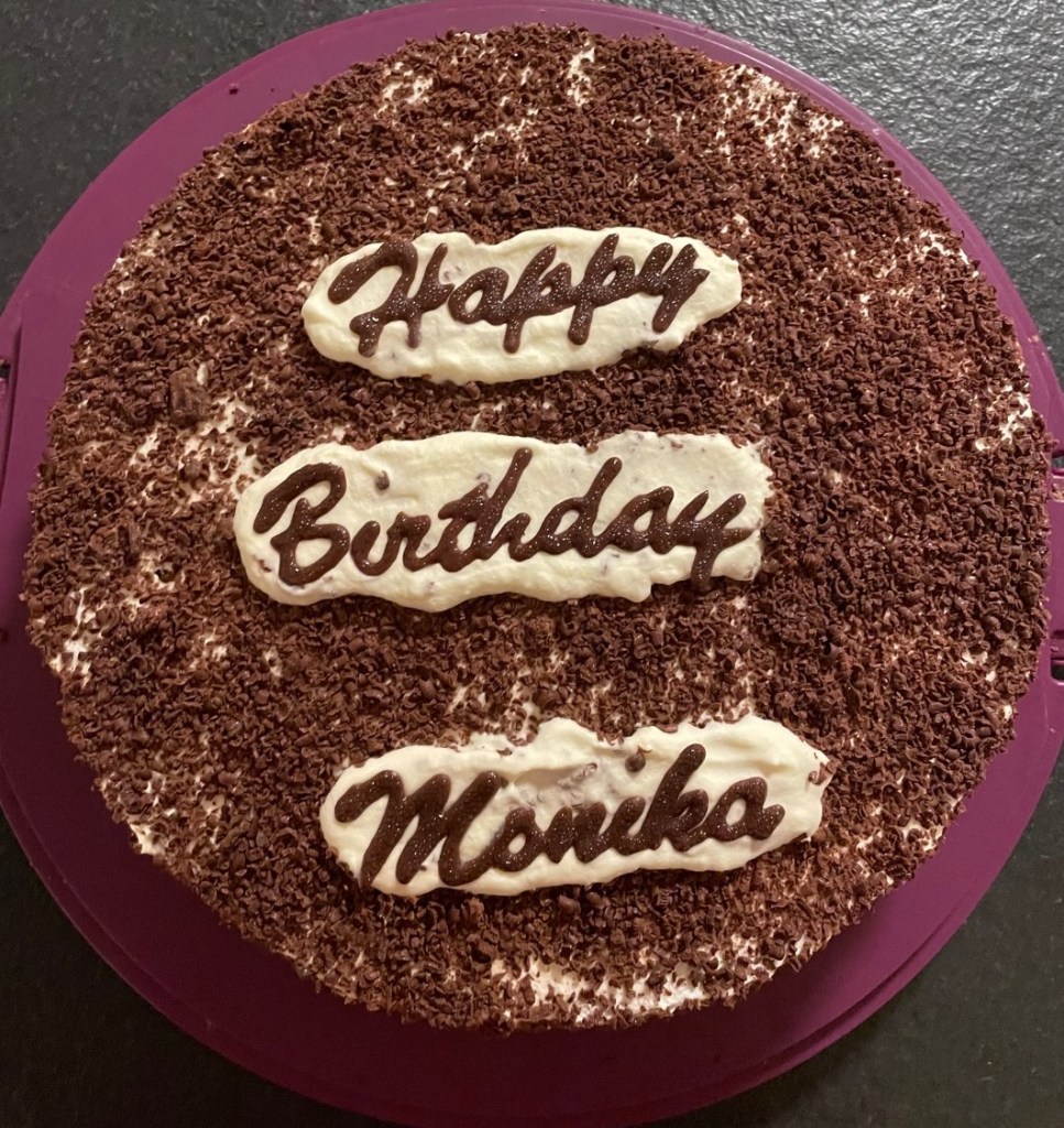 Schwarzwäldertorte mit Rahm für Monikas Geburtstag.